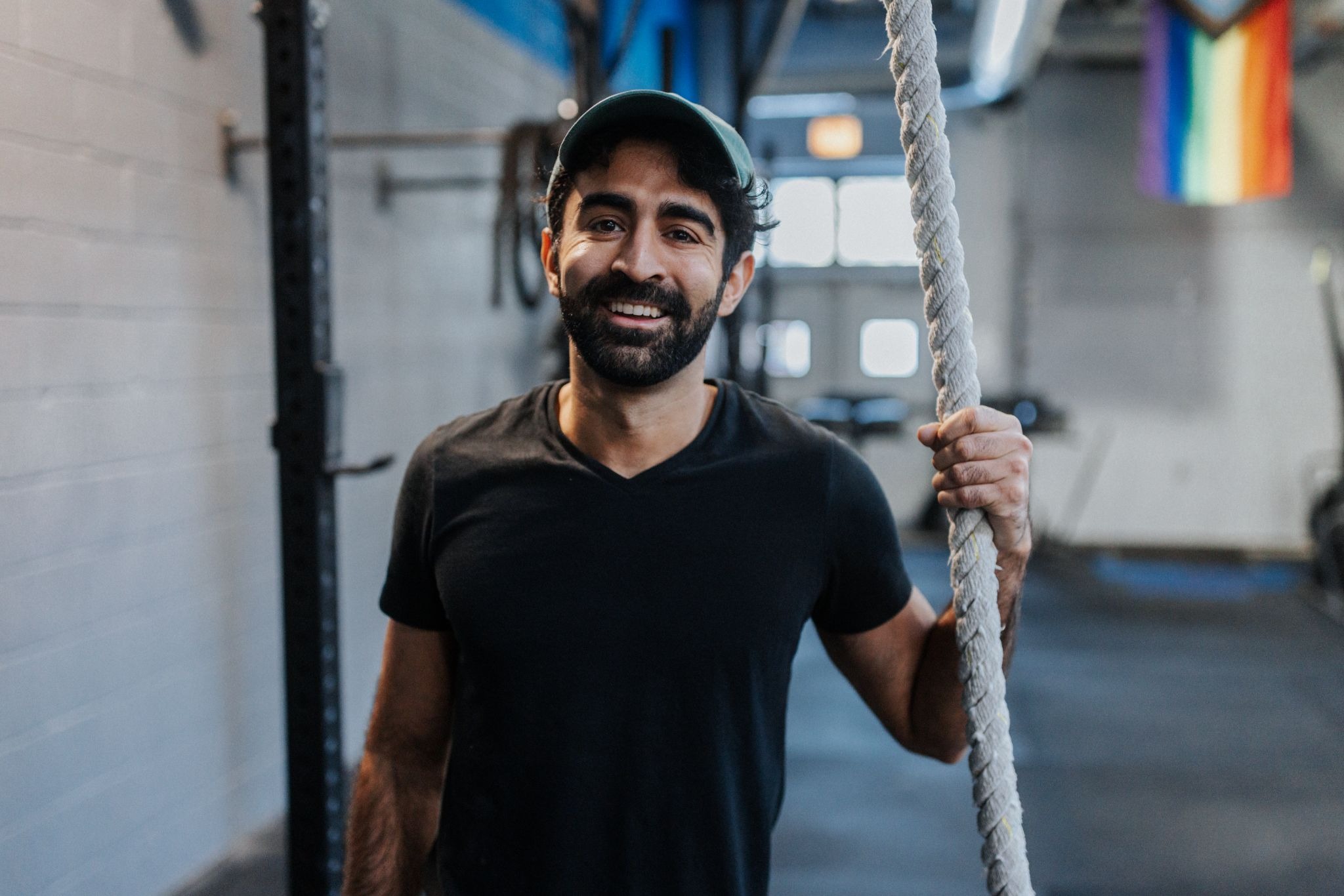 In the gym, he wants to string together at least 10 double-unders, snatch at least 140 pounds, and clean and jerk at least 175 pounds. He says he uses SugarWOD to track his scores and progress over time—plus “Coach Drew takes wonderful pictures of us working out (some of these could be repurposed as thirst traps), and I like to compare these across time to see how my body has changed.”